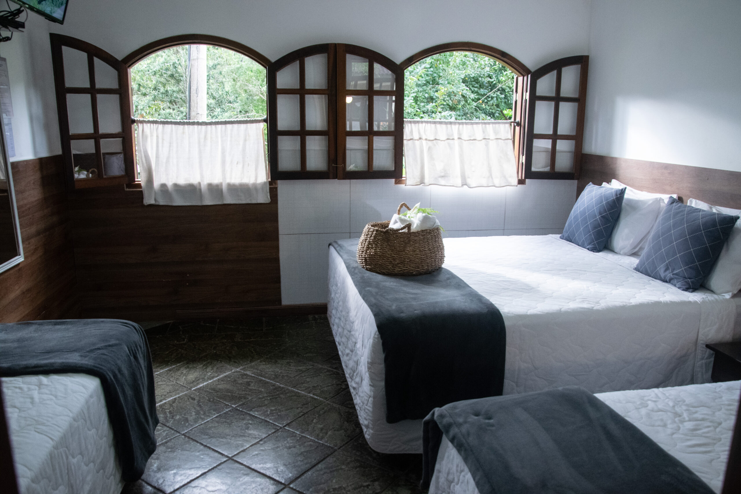 A Pousada está renovada, com novas instalações, apartamentos mobiliados com cama box, frigobar e um novíssimo e aconchegante enxoval.